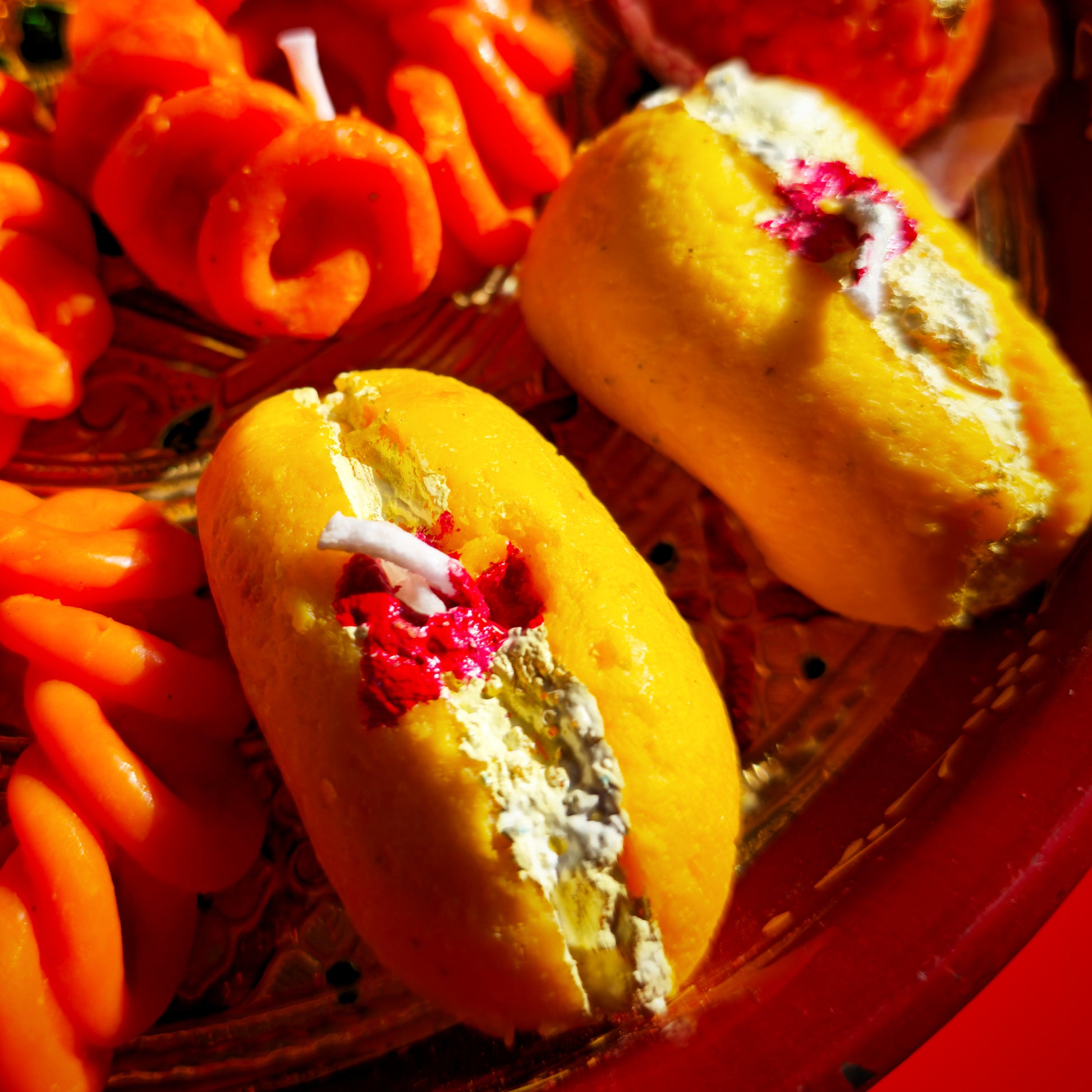 Akrielle’s Cham Cham Delight Candle is a tribute to the timeless Indian sweet — soft, golden, and irresistibly festive. Crafted with 100% natural soy wax, this candle captures the joy of mithai season with its lifelike texture, saffron hue, and a hint of shimmer that feels straight out of a festive platter.