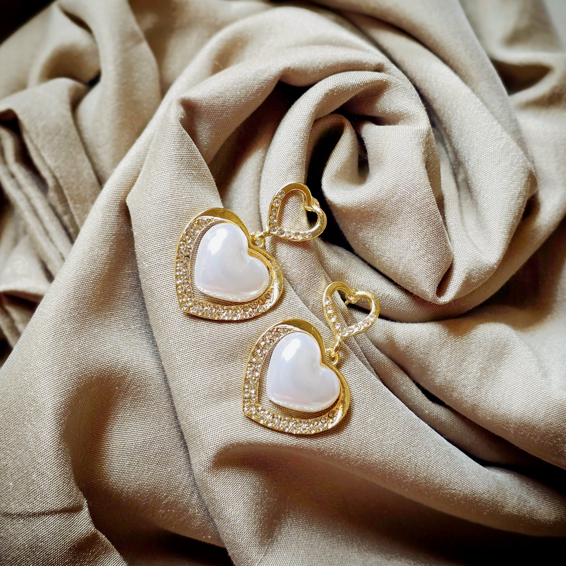Golden hearts cradling lustrous pearls — the perfect mix of timeless love and elegance.